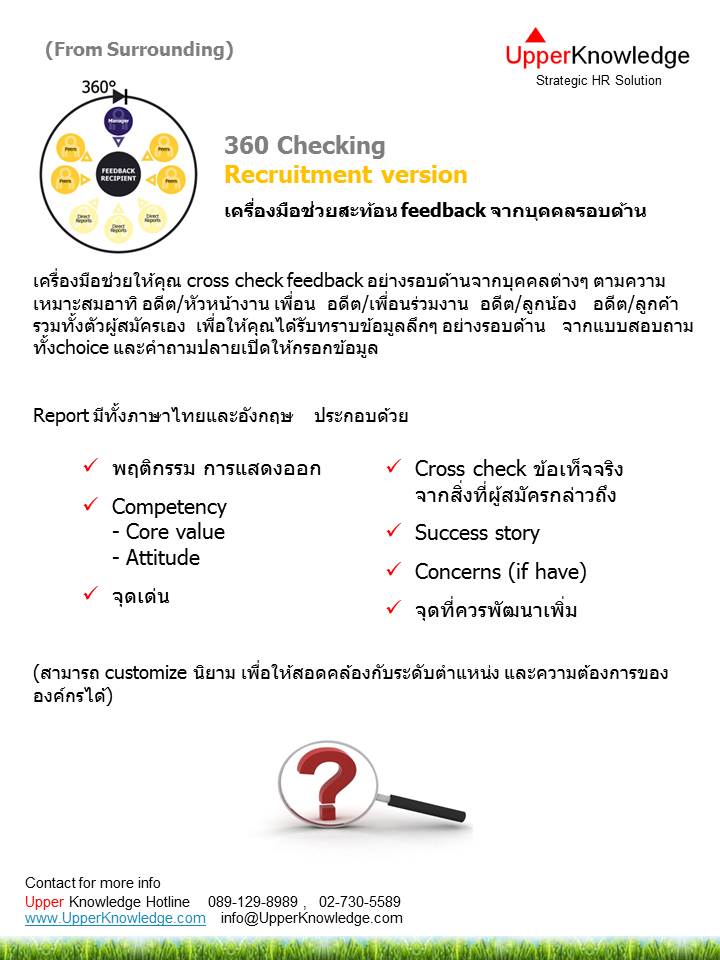 เป็นเครื่องมือช่วยให้คุณได้รับข้อมูลสะท้อนกลับอย่างรอบด้าน ทั้งจากหัวหน้างาน เพื่อนร่วมงาน ลูกน้อง(หากมี) รวมทั้งตนเอง